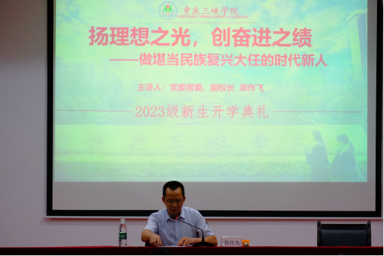 郭作飞指出,大学是铸就光荣和梦想的地方,是一个重整行装再出发的新起点。他提出了几点建议与大家共勉,一是希望大家树立崇高理想,做“眼里有光”的大学生。二是希望大家练就过硬本领,做“脚下有根”的大学生,三是希望大家牢记使命担当,做“肩上有责”的大学生。最后,他希望广大新生在未来的大学生活中,能够用加法增长才干,用减法祛除杂念,用乘法创造机遇,用除法排解困难,让自己的大学生活更有意义,争做堪当民族复兴时代大任的优秀大学生。