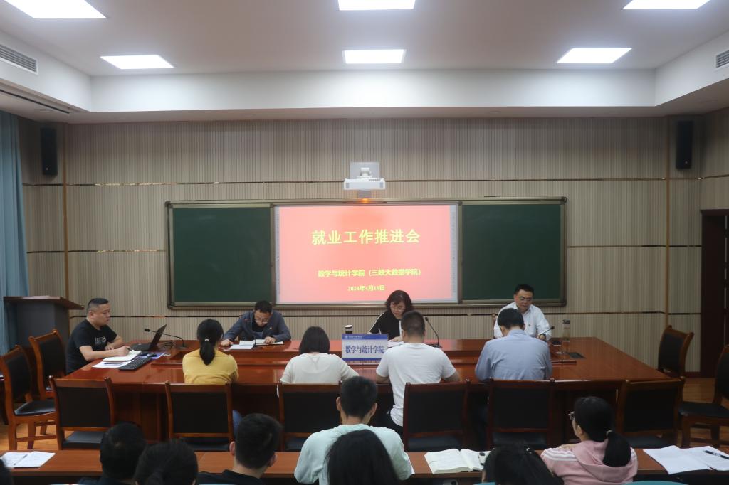 为落实2024届全国高校毕业生就业重点工作推进视频会会议精神,全面促进学院就业工作走深走实,4月18日下午,数统学院在明辨1栋104会议室召开2024届毕业生就业工作推进会。学院班子成员、办公室主任、学工办主任、教务科长、就业专干、毕业班辅导员及全体专任教师参会,会议由副院长涂正文主持。