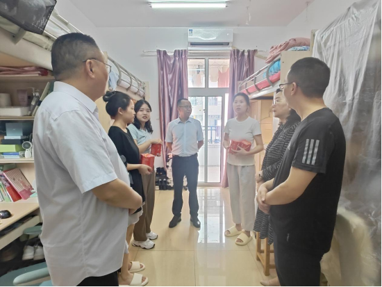 走访过程中班子成员提醒学生们天气炎热,注意防暑,安全用电,平稳安全度过假期,郭校长和班子成员为学生们发放了解暑用品和精心准备的中秋月饼,学生们热情高涨,纷纷感谢学校和学院的关怀。