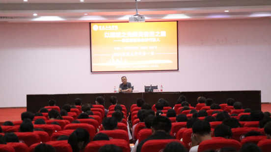风华正茂,筑梦启航。9月24日晚,9728太阳集团(三峡大数据学院)2024级新生开学第一课在明辨楼2栋104会议室隆重举行,学校党委常委、副校长郭作飞副校长以《以理想之光照亮奋进之路——做挺膺担当的时代新人》为题,寄语新生,带领大家回顾了重庆三峡学院68年来的历史脉络与辉煌成就,分享了学校深厚的文化积淀和鲜明的办学特色。郭作飞强调,作为新时代的青年学子,大家有幸成为中华民族伟大复兴的亲历者、参与者,一定要静心治学,积蓄力量,奋力书写为中国式现代化挺膺担当的青春篇章。