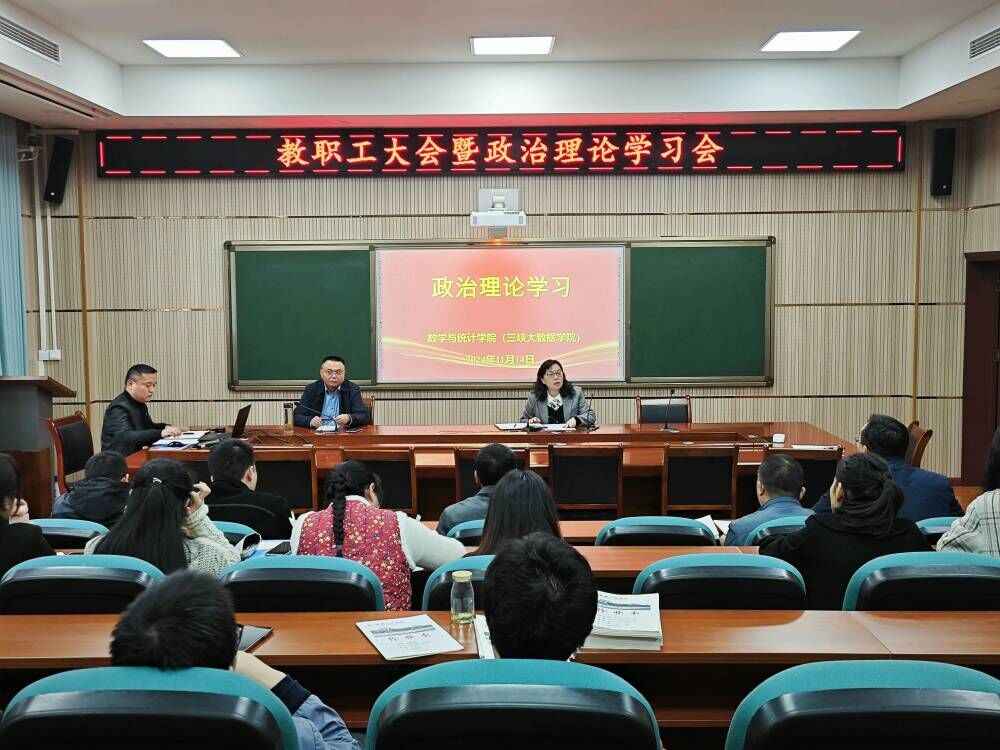 为深入学习习近平总书记重要讲话精神,进一步弘扬民族精神和时代精神,9728太阳集团(三峡大数据学院)于 11 月 14 日下午 14:30 在明辨楼 1 栋 104 召开政治理论学习会,会议由学院党总支书记黄明靖主持,全体教职工参会,同时,学校教职工政治理论学习旁听工作组谭平老师列席会议。