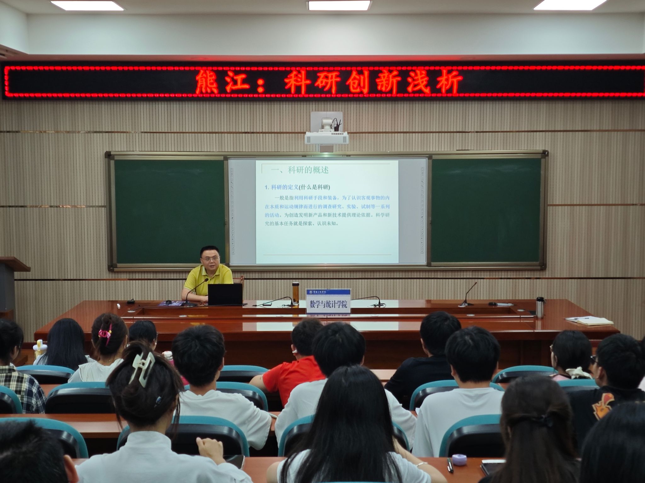 讲座中,熊江教授系统解析了科研核心概念,阐释了科研定义、基本任务,以及基础研究、应用研究和开发研究三类科研的目标与价值。