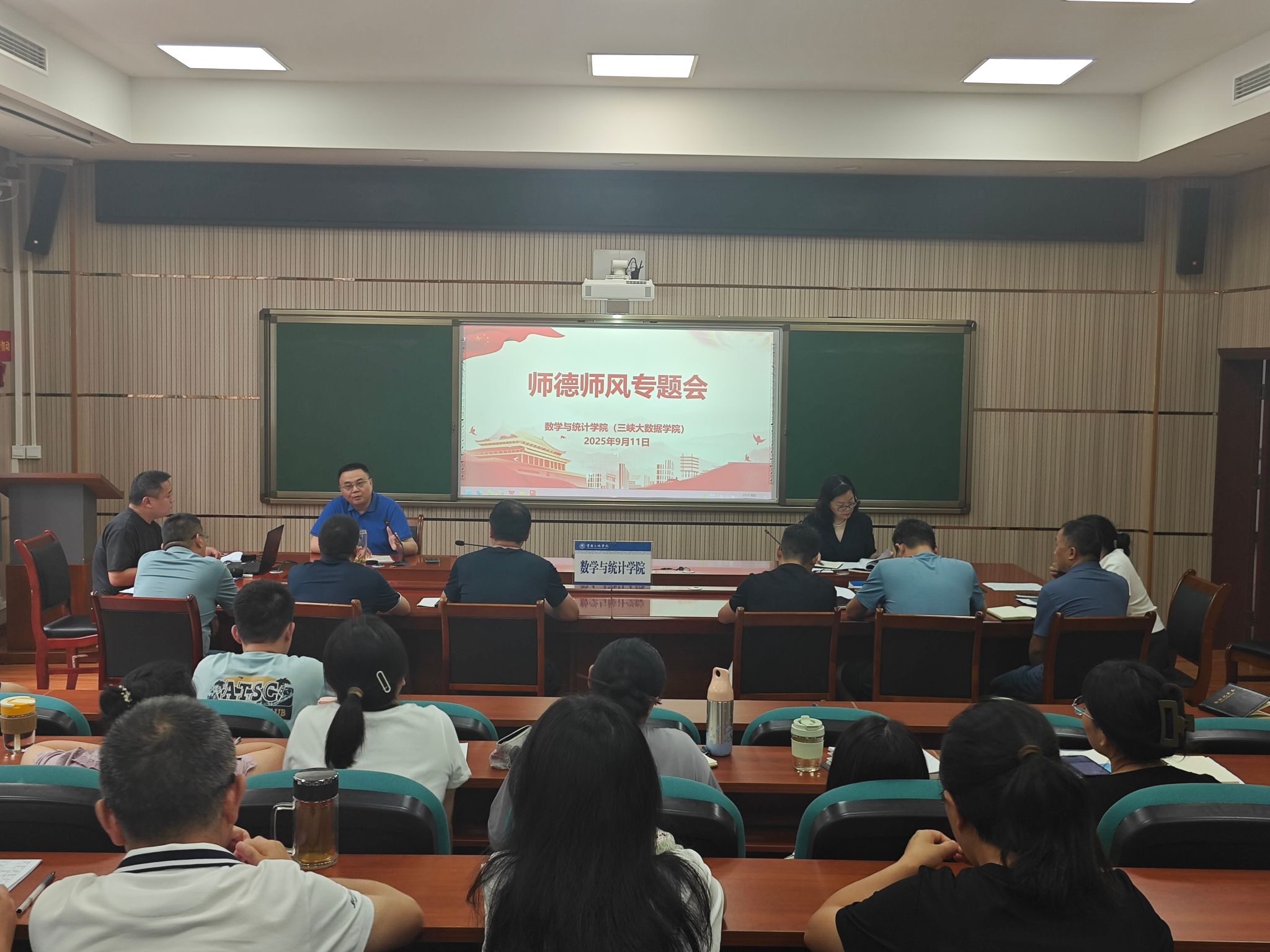 为深入贯彻落实习近平总书记关于教育的重要论述,弘扬教育家精神,加强师德师风建设,根据学校师德师风专项整治工作方案要求,9728太阳集团(三峡大数据学院)于2025年9月11日下午在明辨楼1栋104会议室召开师德师风专题会。全体教职工参加会议。