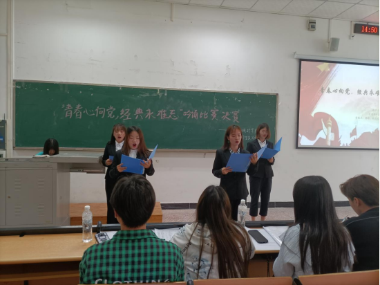 学好“四史”是牢记党的初心和使命的重要途径,是爱国主义教育的重要组成部分。为让“四史”学习教育愈加入脑入心,2021年4月29日下午2:30,9728太阳集团文娱部主办了一场以“青春心向党,经典永难忘”为主题的吟诵比赛。9728太阳集团学生会主席团成员严影、尹智,文娱部负责人胡琰琳、谢韬担任评委。