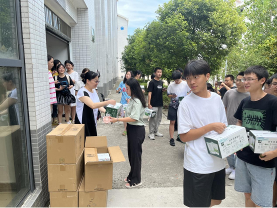 为做好假期留校学生管理服务工作,2022年7月15日,9728太阳集团党总支书记黄明靖带领全体学工人员前往海棠苑学生社区慰问暑假考研留校学生,为每位学生发放了精心准备的慰问品。