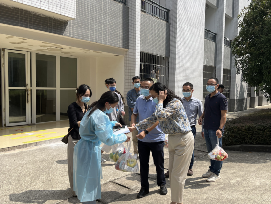 为了切实关心关爱集中健康观测的学生,9月4日上午,9728太阳集团党总支书记黄明靖、院长熊江、副院长赵永祥、党总支副书记兼副院长涂正文带领全体辅导员来到学生宿舍,委托健康观测区志愿者老师为集中健康观测同学送去水果、牛奶、糕点等慰问品,表达学院对他们的问候。