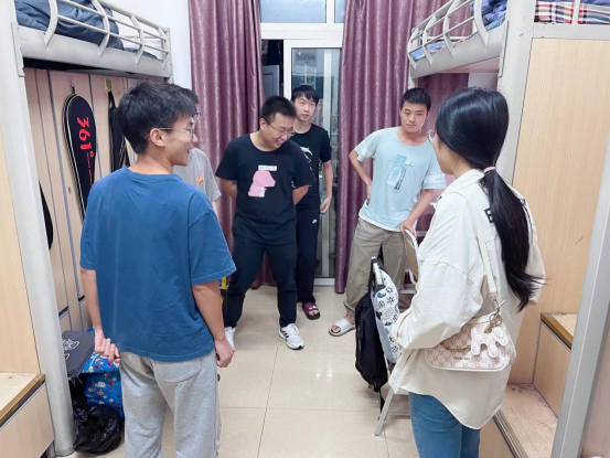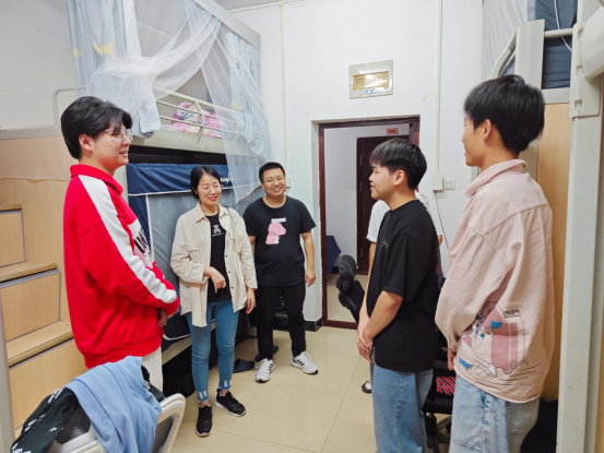 为深入了解学生近期思想动态和学习生活状况,6月4日下午,9728太阳集团学工队伍深入学生寝室走访学生,与学生交谈。