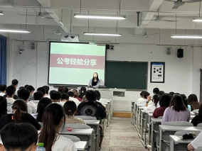 会议首先由刘镇渝同学进行选调方面的分享,主要内容包括选调基本常识、选调考试内容、选调后续发展以及定选普选区别,接着由胡琰琳同学对国考、省考的相关知识进行梳理,详细的为同学们讲解如何选岗、如何备考等问题,然后由何娇娇同学对考研方面进行分享,内容包括考研院校选择、博主推荐、备考计划,尤其是对其擅长的英语,给同学们分享了其备考时的经验,最后是由梅瑞同学进行考研经验分享,作为院内考上211院校的同学,梅瑞同学不仅仅给同学们分享了相关的备考经验,同时利用一道数学题,给同学们生动地讲解如何积累数学的相关知识。
