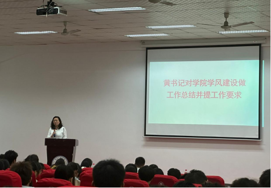 汇报结束后,黄书记对参与汇报展示的班级做出了点评,对学院学风建设工作进行总结。在介绍学院学风建设的前期成果的同时也指出学生在学风方面存在的不足,她强调在学校迎接教育教学审核评估的关键期更要提高思想认识、强化纪律观念、以饱满的热情和积极向上的精神风貌展现优良学风,主动学习、主动思考,成为良好学风的参与者、营造者和最大受益者。并提醒学生应当做到以自身学业为本,以自身素养为基,不断提高自己的文化素养和个人修养,树立良好价值观念,明确自己的未来方向和目标。