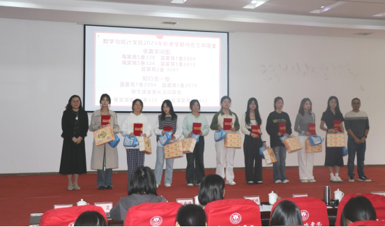 活动中,由赵永祥副院长宣读学院2024年秋季学期特色文明寝室获评名单,本学期通过同学们的团结努力,学院共创建求真学问型、知行合一型等9间寝室,随后由黄明靖书记和赵永祥副院长为获得荣誉的寝室代表颁发奖品和荣誉证书。