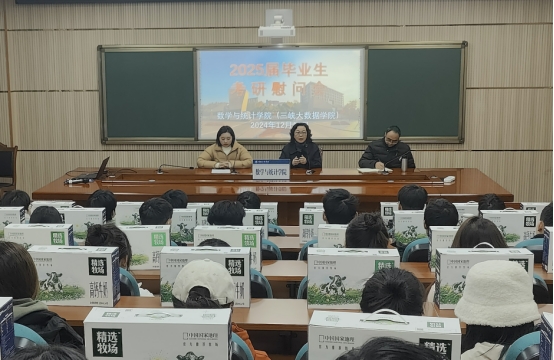为帮助考研学子缓解备考压力,鼓舞考研士气,坚定考研信心。数统学院于12月11日在明辨1栋104会议室开展了2025届毕业生考研慰问活动,为冲刺阶段的考研学生送上暖心礼包。学院党总支书记黄明靖、副院长赵永祥及90余名考研学生参加,会议由毕业班辅导员张婷婷主持。