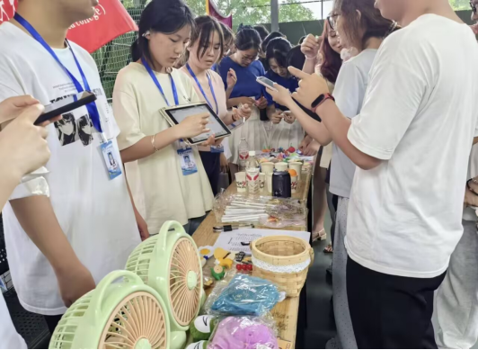 活动现场精心设置了四个妙趣横生、疗愈心灵的小游戏。在拼字谜环节,参与者通过随机抽取的偏旁部首卡片,在限定时间内拼出完整汉字,既考验对汉字结构的理解,也激发了对传统造字智慧的探索热情;“看字说颜色”游戏则以逆向思维设计,要求参与者精准说出字体颜色;吹乒乓球环节中,参赛者需让乒乓球从一排水杯“跨栏”跃入终点,水花飞溅展现力量与精准的平衡;而黏土创作则要求参与者根据随机抽取的造型图片,在短时间内用黏土还原形象,从轮廓捏塑到细节装饰,既考验观察力与耐心。同时完成四个游戏即可抽取奖品,丰厚的奖品吸引了更多的同学前来参与。