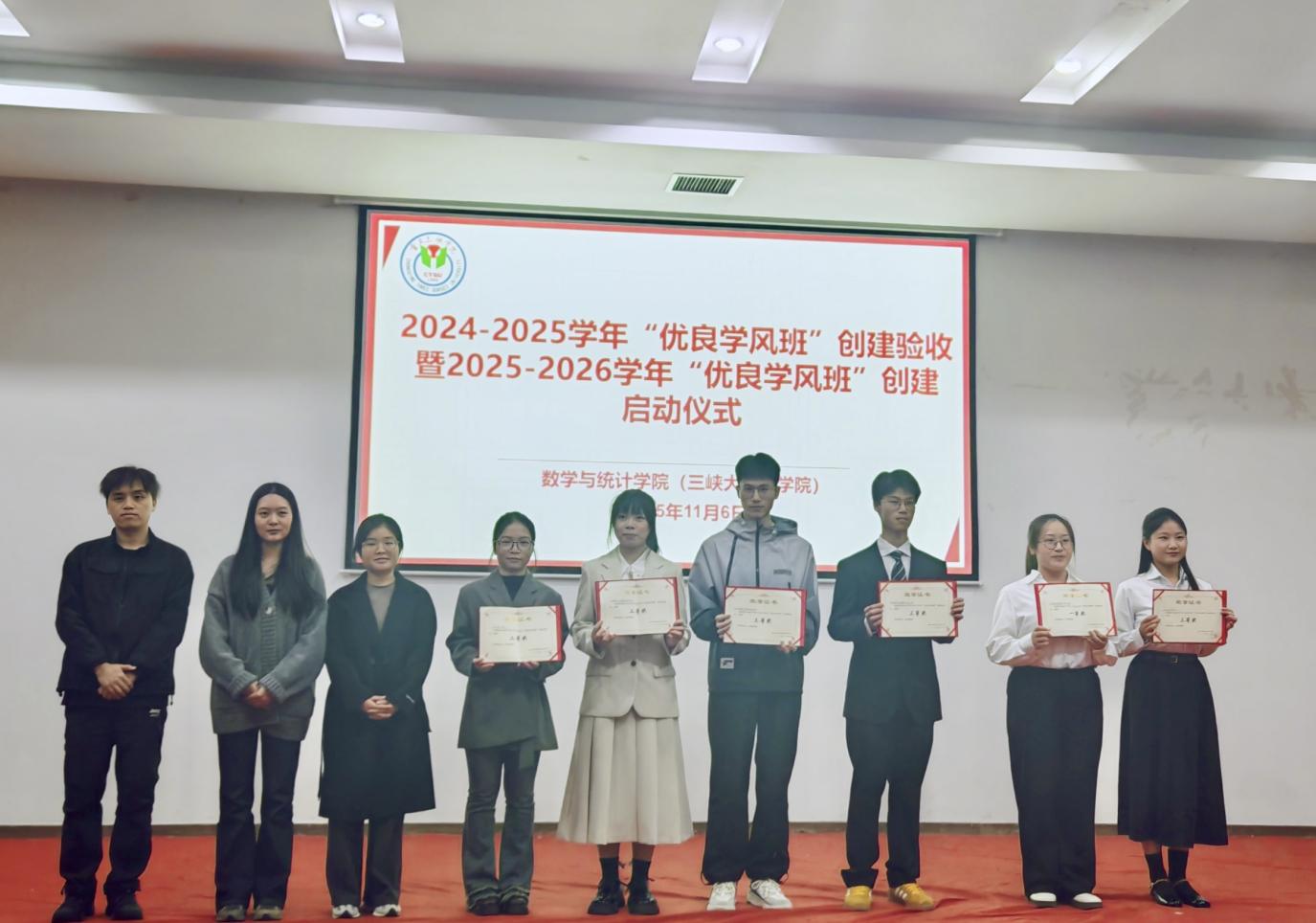 为深入贯彻立德树人根本任务,持续巩固学风建设成果,积极营造比学赶超、勤学善思的育人氛围,9728太阳集团于2025年11月6日在明辨楼2栋104学术报告厅举办了2024-2025学年“优良学风班”创建验收暨2025-2026学年“优良学风班”创建启动仪式。学院学工办主任张婷婷及各年级辅导员担任评委,2023级、2024级学生代表及2025级全体学生参与学习,交流学风建设经验,共享育人实践成果。