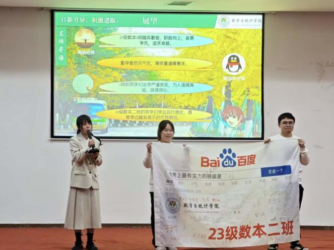 在汇报展示环节,各班代表通过PPT动态演示与现场宣讲相结合的方式,全面展示班级学风建设的阶段性成果。汇报内容涵盖思想引领、学风建设与班级活动等多个维度,不仅有课堂出勤率、学业成绩优良率等硬核数据的支撑,还分享了学科竞赛获奖、志愿服务开展等生动案例,充分展现了各班在增强凝聚力、规范学习行为等方面的创新举措与扎实成效。部分班级的特色建设经验极具推广价值,赢得了评委和现场同学的一致认可。活动尾声,现场评选出本学年“优良学风班”获奖班级,树立了先进典范,彰显了数院学子笃学不倦、追求卓越的精神风貌。