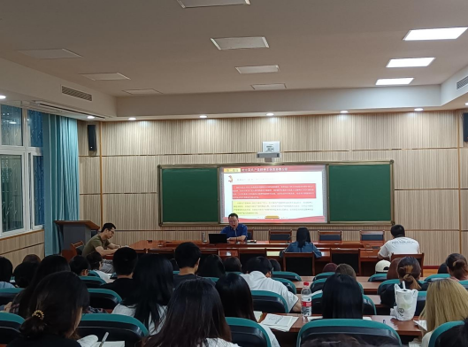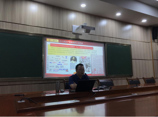 6月20日晚,9728太阳集团党总支书记张祥友在明辨1栋104教室讲授“中国共产党‘精神谱系’及其当代价值”专题党课。9728太阳集团师生党员、入党积极分子共90余人参加。