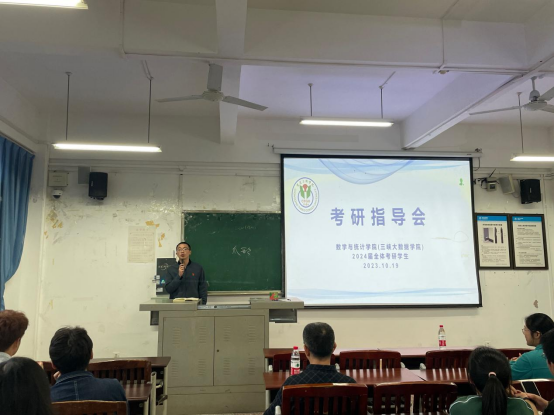 为帮助2024届考研学生缓解复习压力,坚定考研信心,数统学院于10月19日在明辨1栋501召开2024届毕业生考研指导会。会议由学院副院长涂正文主持,教工党支部黄华平、2024届毕业班辅导员张婷婷、学生第三党支部龚秋林以及2024届全体考研学生参加会议。