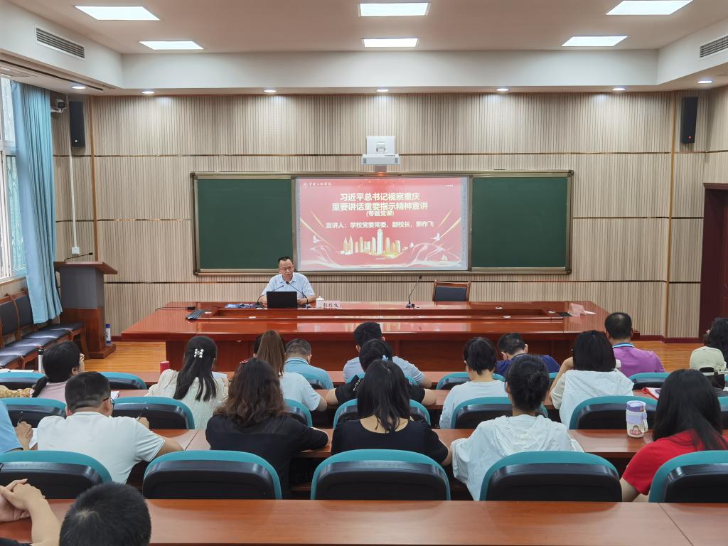 郭作飞在宣讲中指出,习近平总书记的重要讲话重要指示精神,以中国式现代化建设的全局视野,结合重庆发展实际和独特优势,深刻阐述了事关重庆高质量发展的一系列根本性、方向性、全局性重大问题,为重庆高质量发展指明了方向。学校要抓住国家战略叠加的机遇,主动把学校事业发展放到习近平总书记赋予重庆的战略使命和发展任务中谋划,充分发挥特色优势,以学校高质量发展为契机,以更高站位、更大担当、更有力行动坚决扛起新的使命任务,为中国式现代化重庆篇章建设贡献重庆三峡学院力量。
