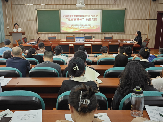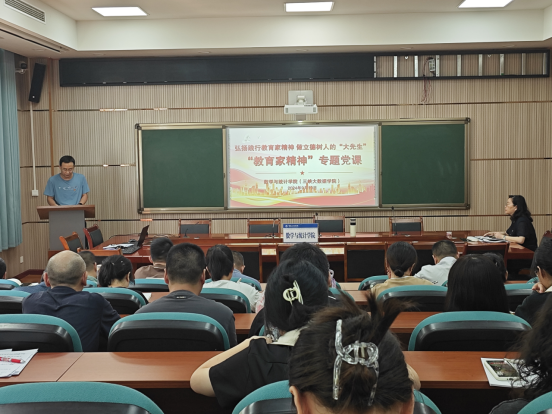 为进一步深化对教育家精神的理解与践行,积极响应习近平总书记教师节重要指示精神,9月19日下午,学院党总支书记黄明靖讲授以“弘扬践行教育家精神 ,做立德树人的‘大先生’”为主题的党课,教工党员和部分学生党员参加学习,其他教职工旁听学习。