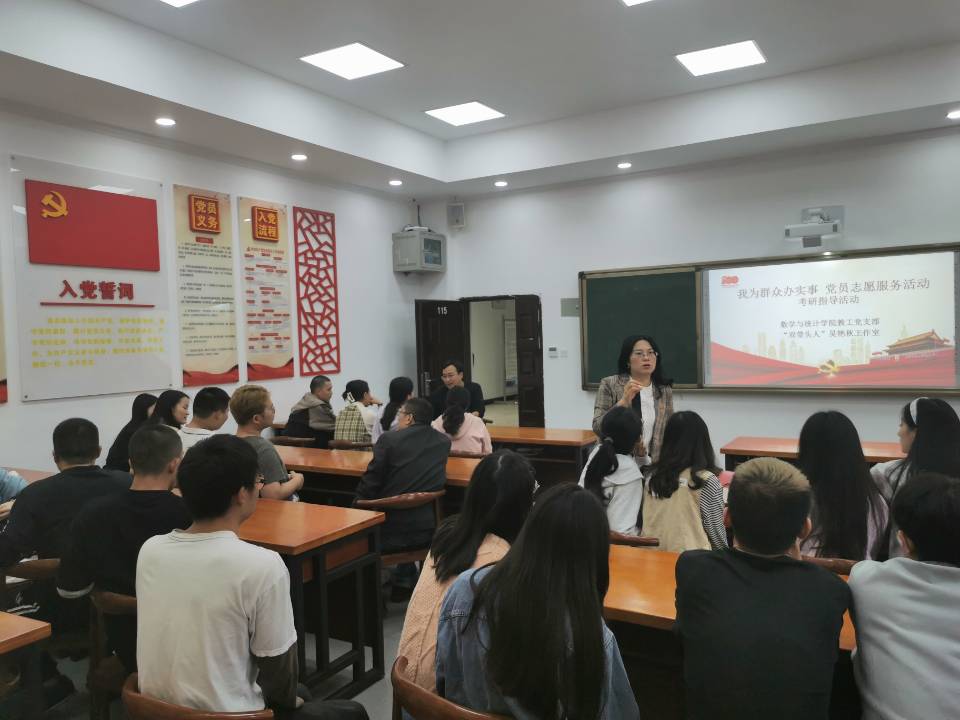 为贯彻落实习近平总书记在党史学习教育动员大会上的重要讲话精神,深入推动党史学习教育走深走实,切实为学生“办实事”,10月14日,教工党支部的教师党员在明辨楼1栋115党员活动室为35名考研学生进行了精心的考研报名指导。