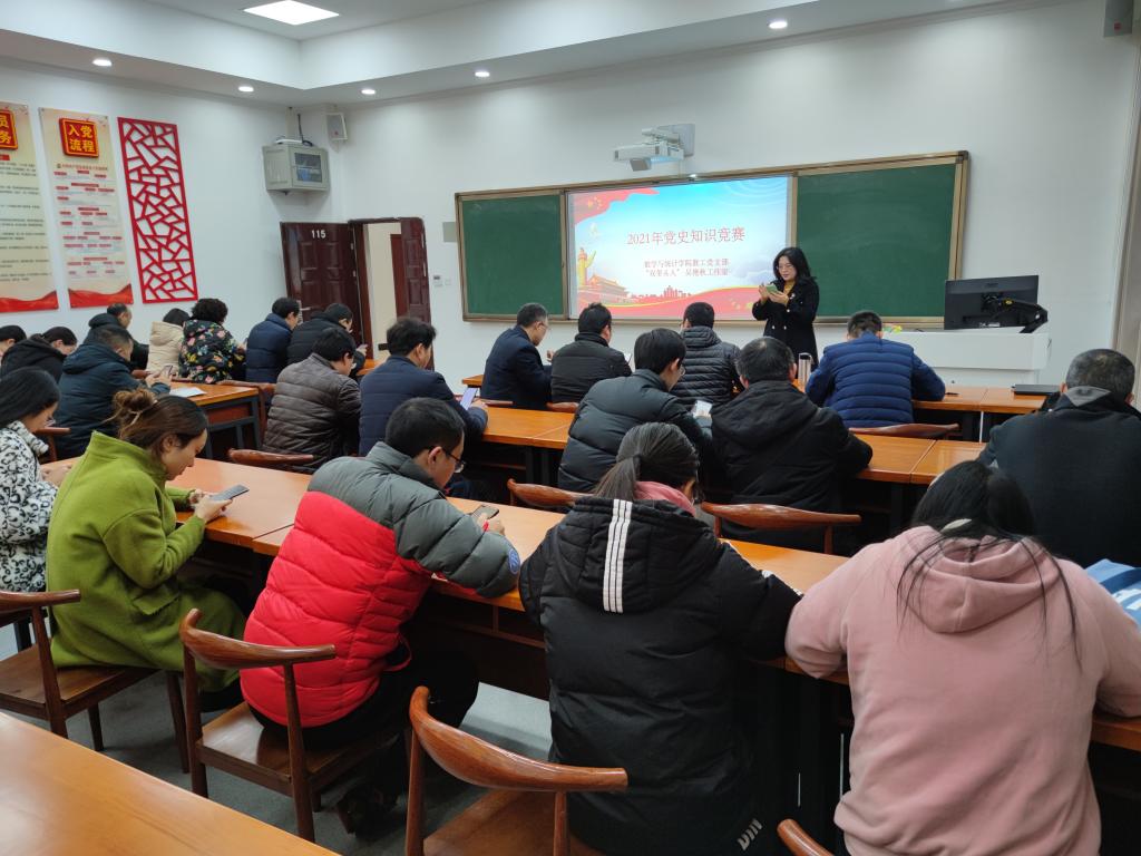 为贯彻落实习近平总书记“七一”重要讲话精神,回顾党的百年奋斗光辉历程,全面阐述党的百年奋斗主题,激励党员同志牢记党的初心使命,9728太阳集团教工党支部于12月09日在明辨楼1栋115会议室举办“学党史、强信念、跟党走”党史知识竞赛主题活动。