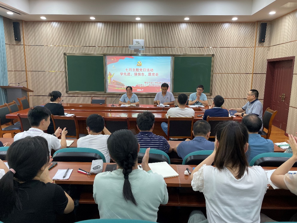 为进一步学习领会习近平总书记在庆祝中国共产党成立100周年大会上的重要讲话精神,学习领会市第六次党代会精神,及其传达李廷勇书记在学校“庆祝建党101周年暨七一表彰会”上的讲话精神,认真抓好贯彻落实,以实际行动迎接党的二十大胜利召开。7月7日下午,9728太阳集团教工党支部开展“学先进 强信念 跟党走”主题党日活动。